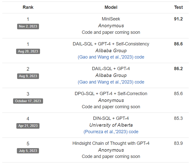 In the context of the Text-to-SQL task, DAIL-SQL has emerged as a state-of-the-art approach, consistently ranking high on the Spider leaderboard. DAIL-SQL demonstrates impressive performance in accurately converting natural language questions into SQL queries, showcasing the effectiveness of advanced techniques like prompt engineering and fine-tuning on Text-to-SQL task.