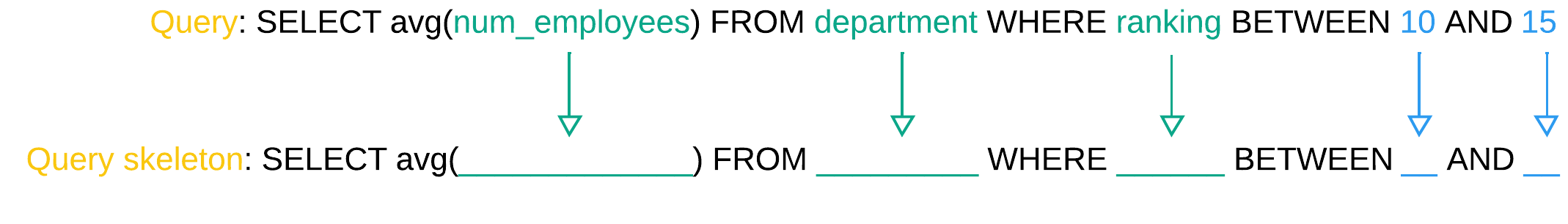 Selection based on SQL query skeleton (QSS):